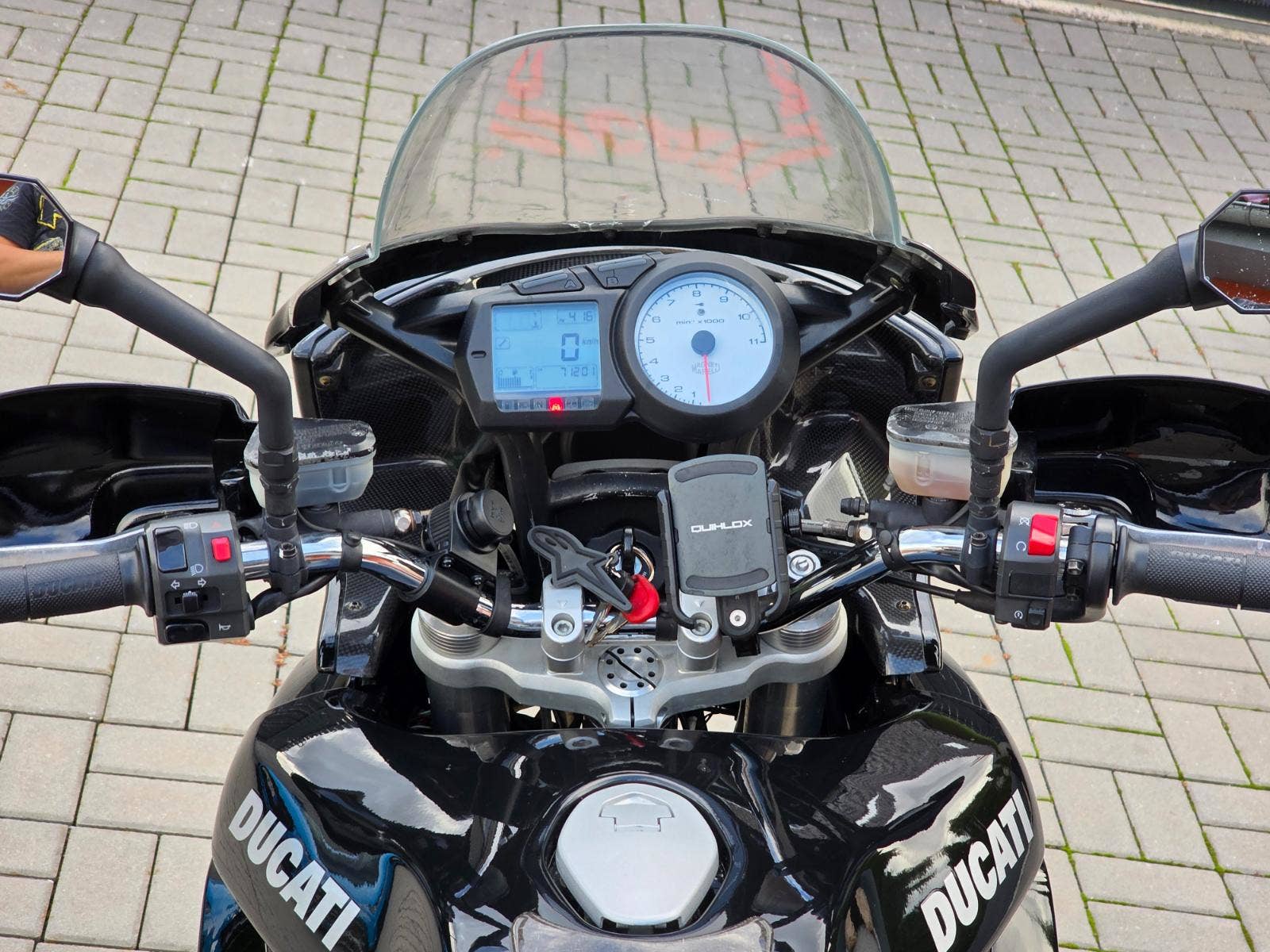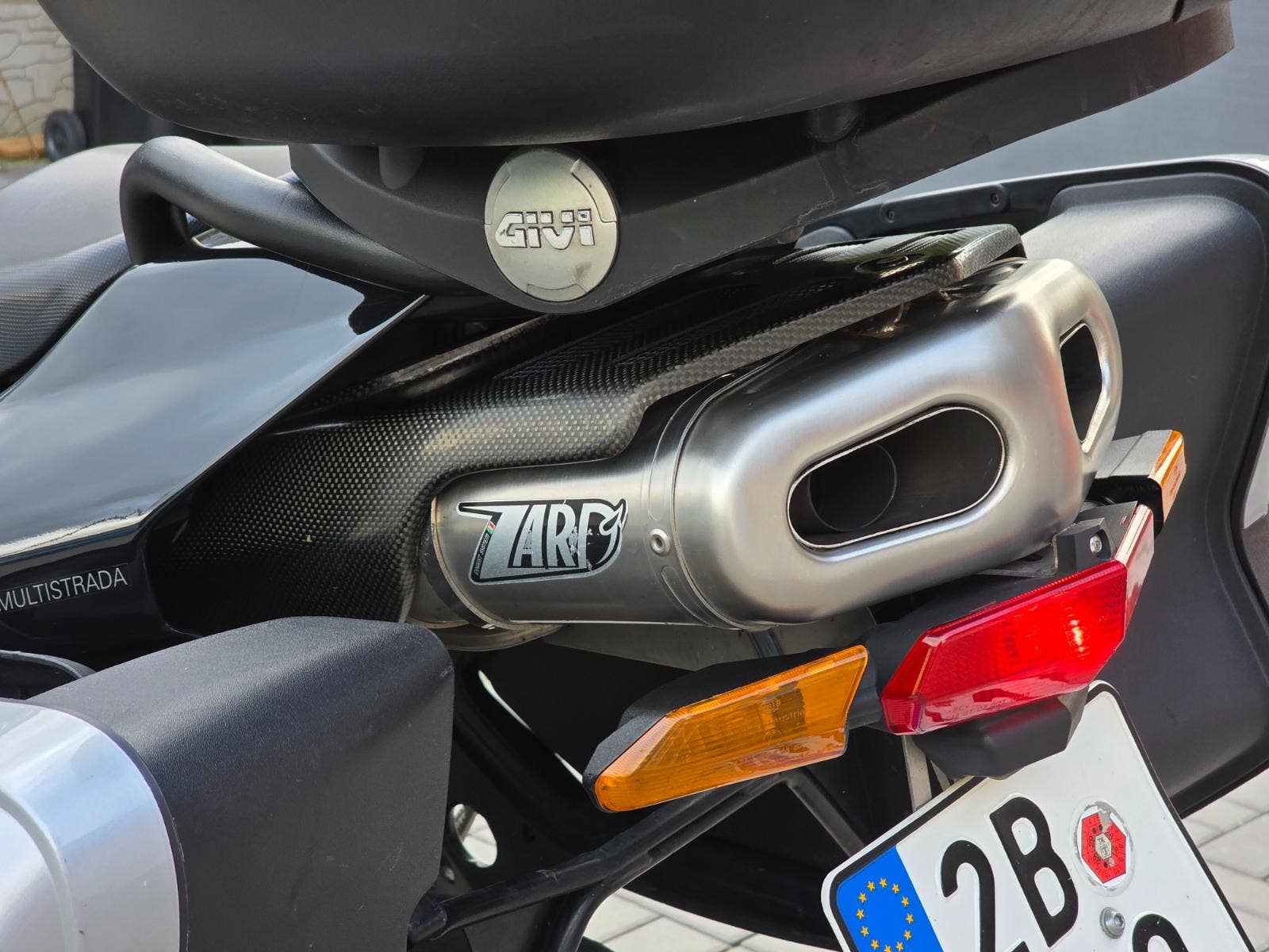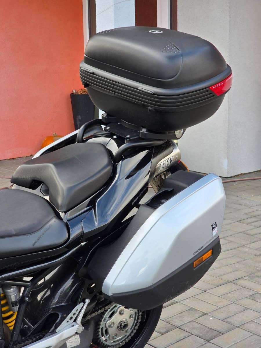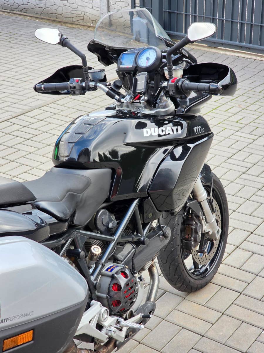 Prodám Ducati Multistrada 1000 DS, rok výroby 2005, najeto poctivých 71.000 km, výkon 62 kW, objem motoru 992cm3, STK platná do 6/2027. Motorka byla zakoupena jako nová v Ducati Moto Italia Praha. Navíc dokoupeno hromado doplňků jako originální boční kufry, vrchní kufr Givi včetně držáku, homologovaný laděný výfuk ZARD, karbonové díly přední blatník, zadní blatník, kryty řemenů, kryt spojky, kryt výfuku, klín pod motorem, vnitřek přední masky apod. Motorka plně funkční, pravidelný servis u specialisty na Ducati, rozvody a desmo servis v 57.000 km, filtr olej každý rok na jaře. Nějaké kosmetické vady se najdou. Originální díly k motorce, stejně jako manuál k obsluze, serviska, klíče, kodová karta apod.