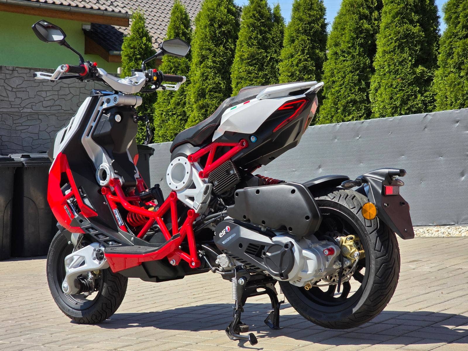 Motor: jednoválec, 4 takt, 4 ventily, kapalinou chlazený – dvojitý vačkový hřídel DOHC, vrtání a zdvih 58x47 (mm), objem motoru 125cm3, maximální výkon 12,5HP (9,2 kW) při 9500ot./min, točivý moment 10,5Nm při 7750ot./min, vstřikování elektronické MAGNETI MARELLI, spojka suchá odstředivá, pohon trapézový řemen CVT,