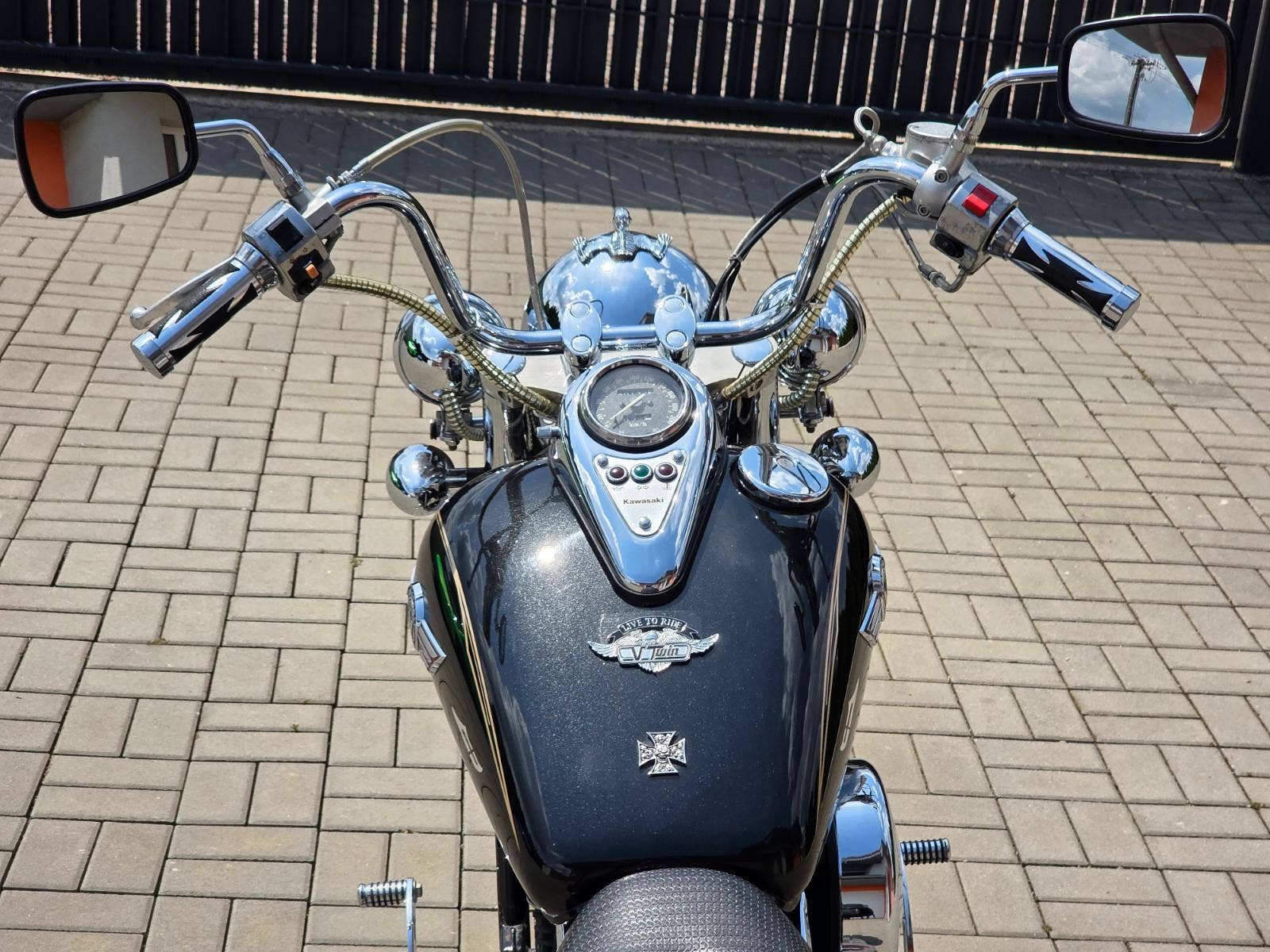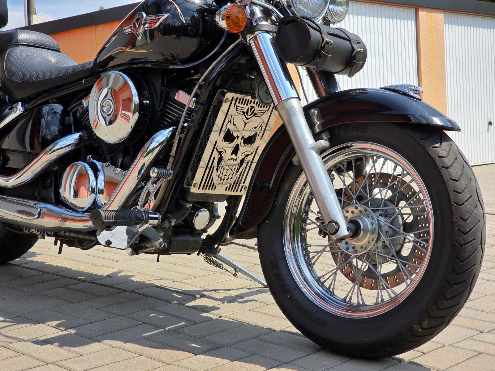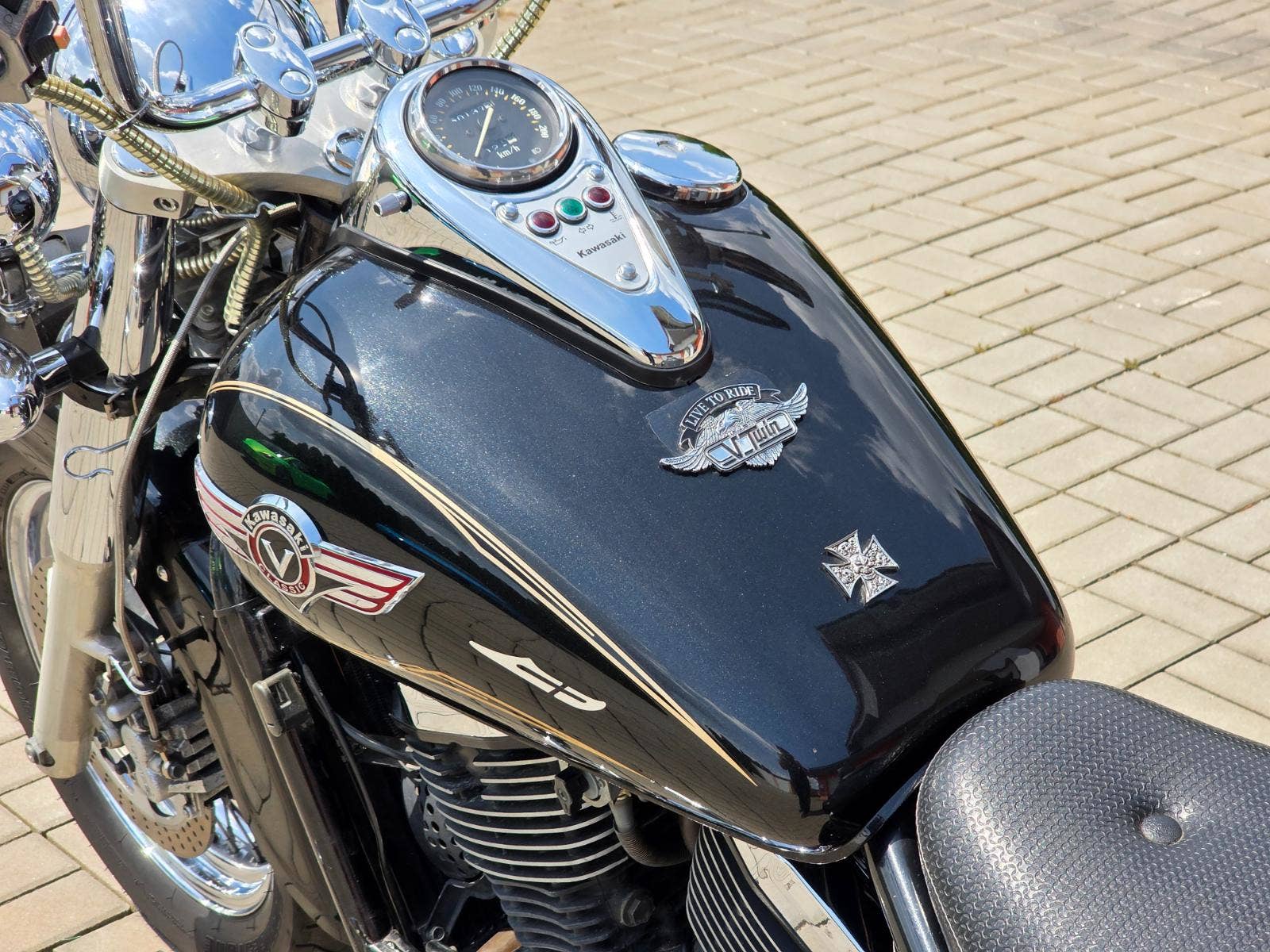 Prodám Kawasaki VN 800 Classic v černé metalíze, rok výroby 2005, najeto 50.150 km, výkon 40,5 kW, objem motoru 805cm3, STK platná do 4/2027. Motorka dovezena z Itálie firmou Freemoto Prostějov v roce 2013 s nájezdem 25.000 km. Od 2013 jeden majitel, pravidelný servis. Navíc dokoupené doplňky předkopy, vyšší řidítka, pancéřové hadice, držáky na brašny, opěrka spolujezdce, přídavné světla, brašny, rolka, kryt chladiče.