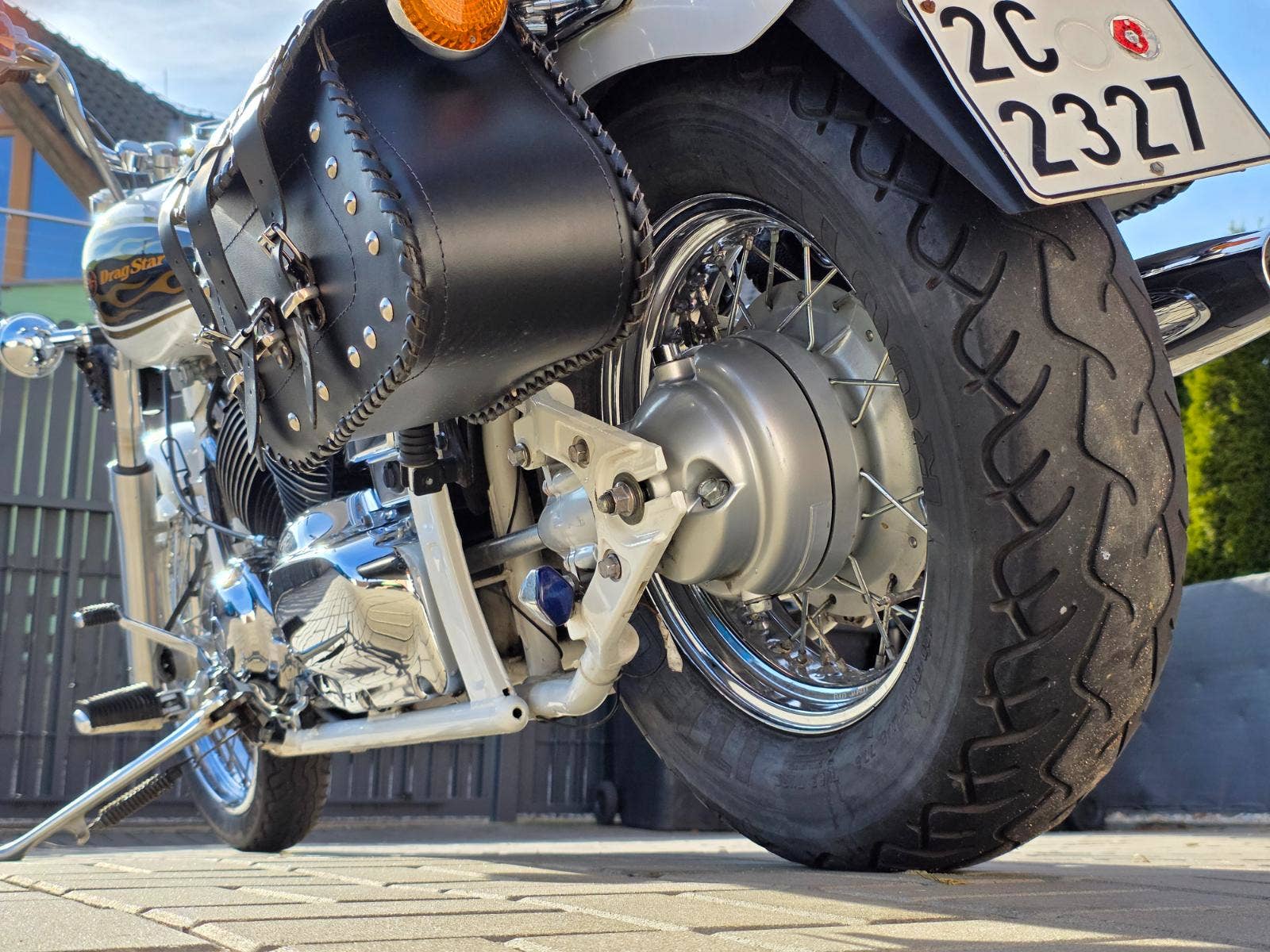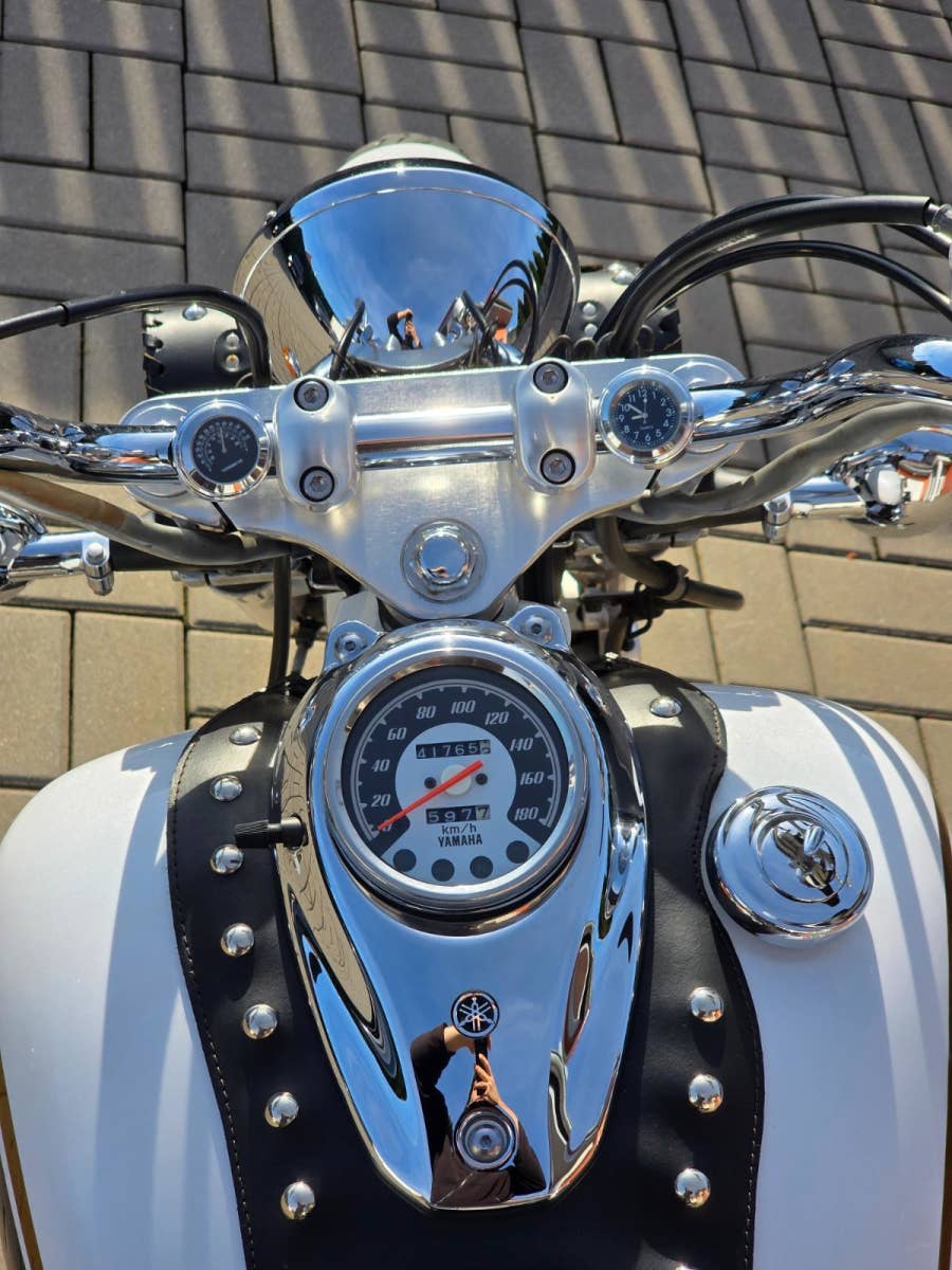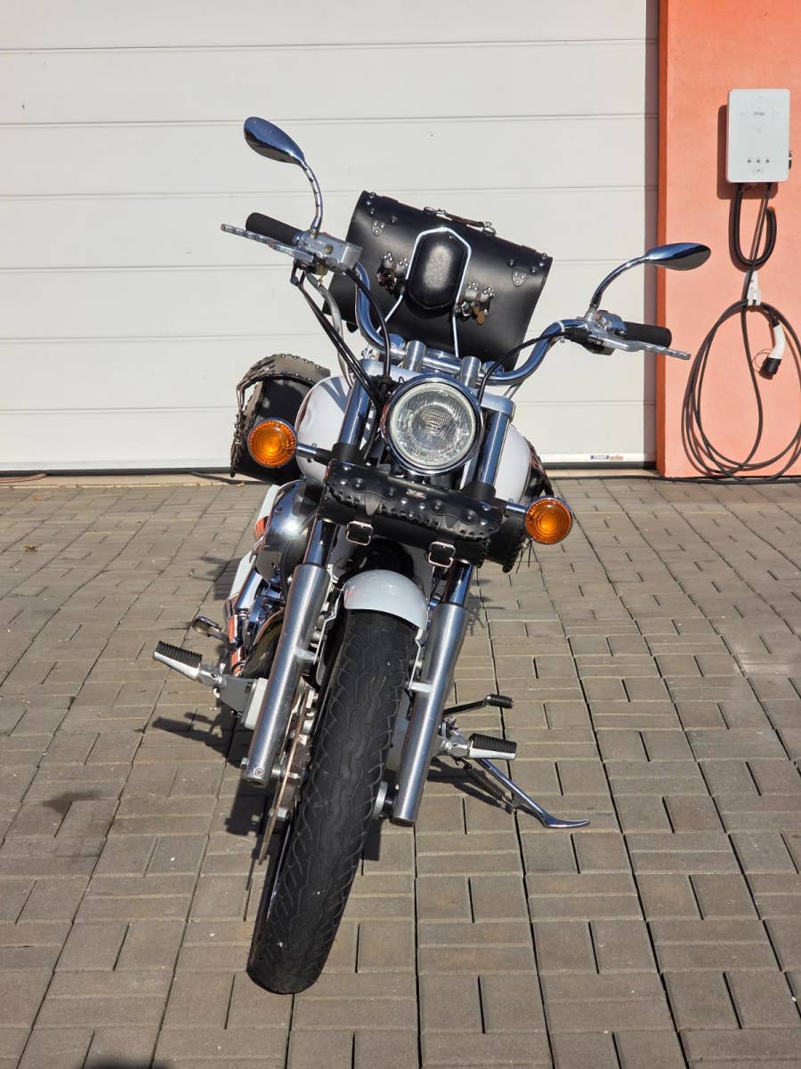 Prodám Yamaha XVS 650 Dragstar v zajímavé originální barevné kombinaci bílá s bílým rámem, rok výroby 2000, najeto 41.700 km, výkon 29 kW, objem motoru 649cm3, STK platná do 5/2027. Motorka byla dovezena do ČR již v roce 2007 s nájezdem 18.000 km. Pravidelně servisovaná. Na motorce jsou navíc doplňky jako opěrka spolujezdce plus zadní nosič (7.000Kč), nosiče na brašny (2.000Kč), boční brašny RSA (5.000Kč), zadní brašna zamykatelná RSA (5.000Kč), kožená pás na nádrž (2.000Kč), rolka (1.000Kč), teploměr, hodiny. Pěkná udržovaná motorka v originálních barvách s originál výfuky.