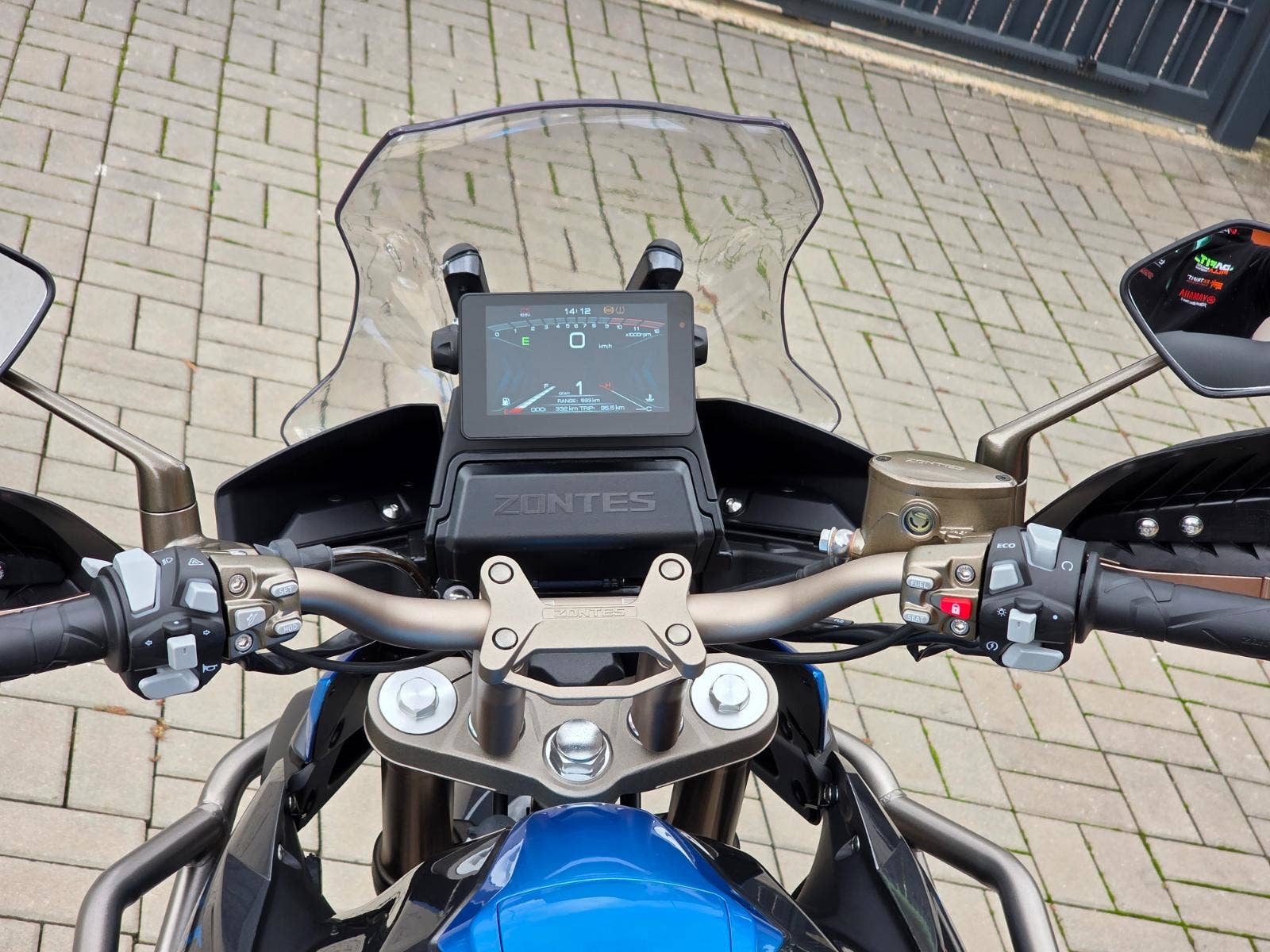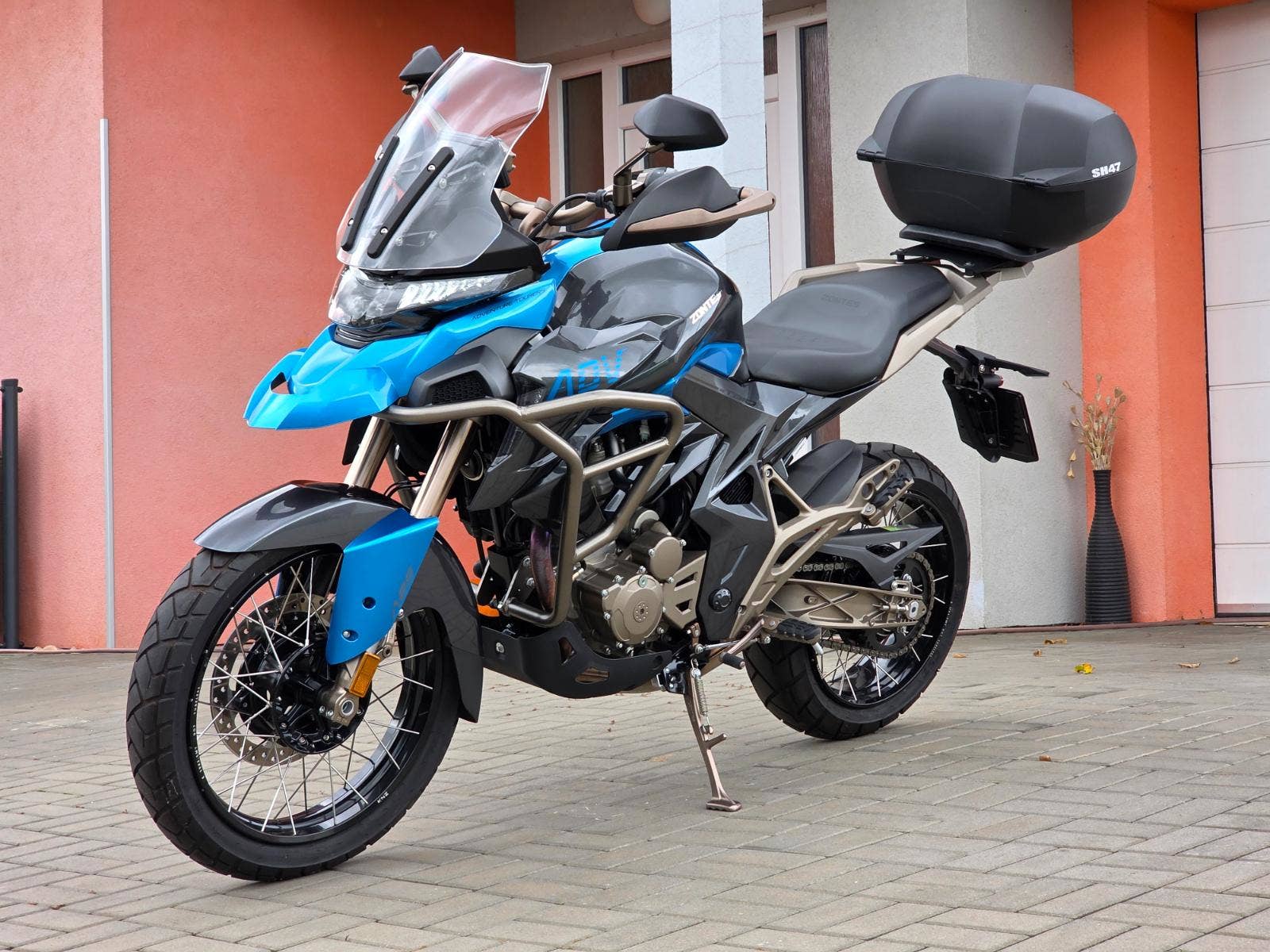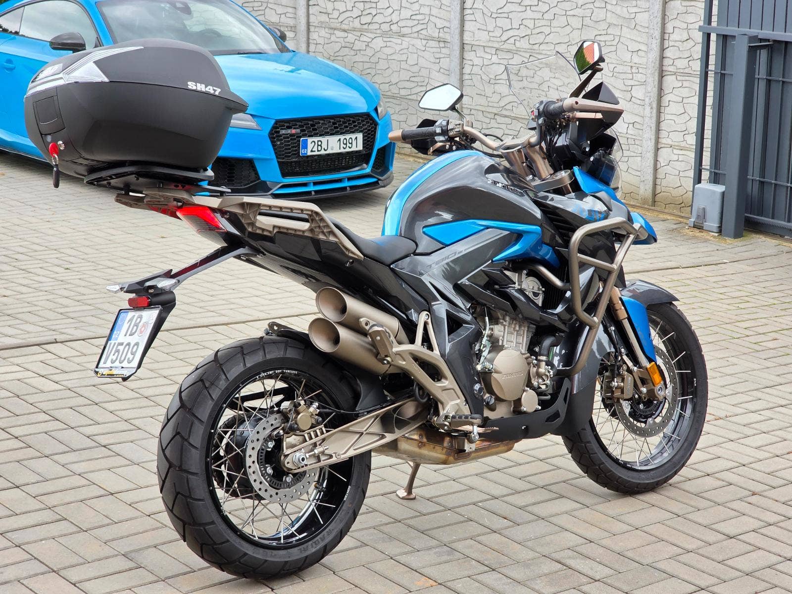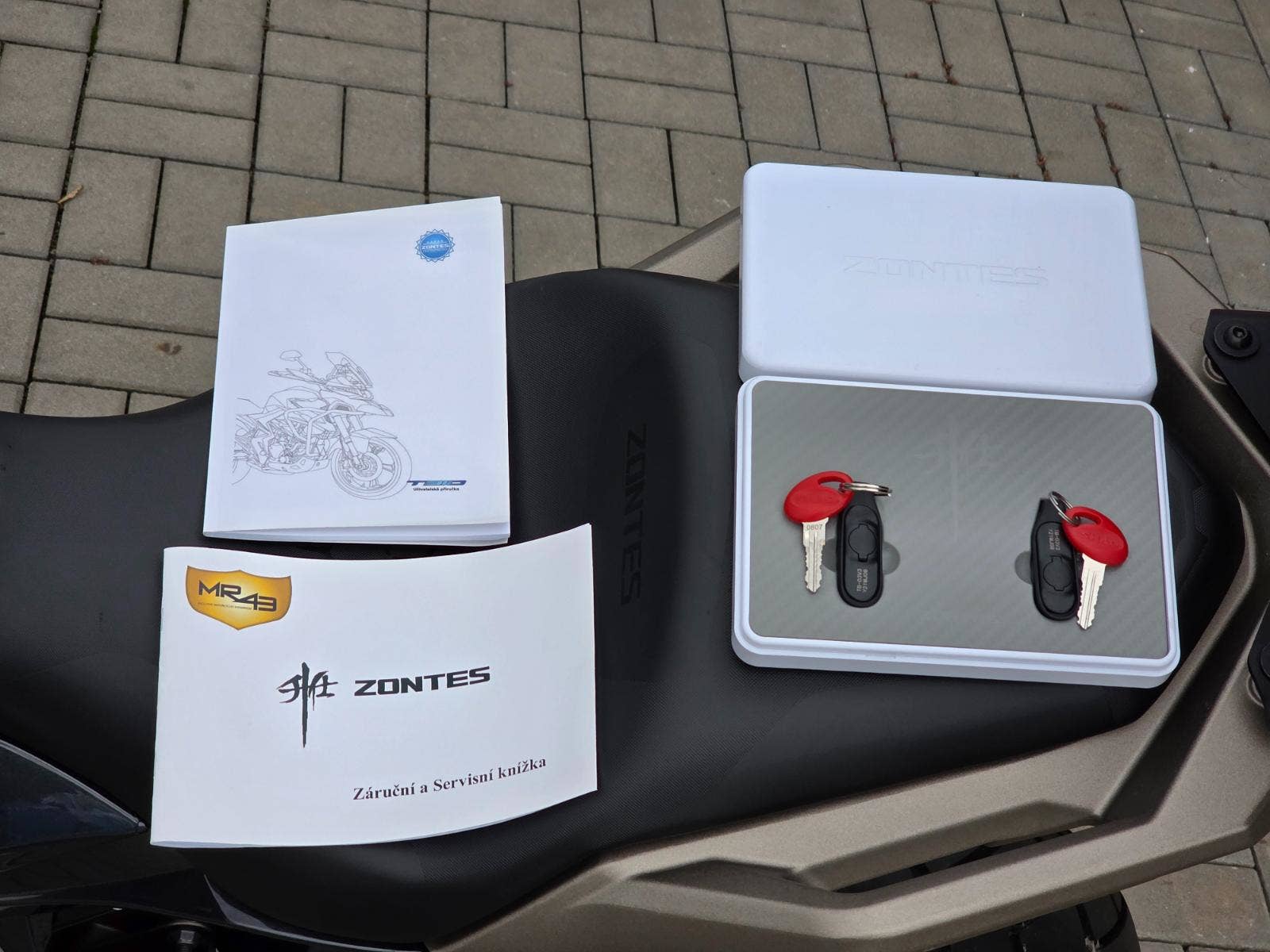 Prodám Zontes 310 Tour, rok výroby 2022, najeto pouze 332 km, výkon motoru 26 kW, objem motoru 312cm3, STK platná do 5/5029. Motorka byla zakoupena u autorizovaného prodejce Zontes. Parádní cestovní motorka do 35 kW výkonu (řp. A2) s opravdu bohatou výbavou vzhledem k ceně a kategorii. Plně bezklíčové ovládání, elektricky výsuvné plexi, elektricé otevírání nádrže a sedla, kontrola tlaku a teploty v pneumatikách, TFT barevný displej, volba jízdních režimů, ABS, podsvícené tlačítka, připojení telefonu, LED světla, 12V zásuvka, integrované padací rámy, deflektory rukojetí, drátěná kola, nastavitelné páčky apod. Navíc dokoupen kufr Shad s nosičem. Celkově motorka v perfektním stavu bez oděrek či poškození jako nová, nehavarovaná, nelakovaná.